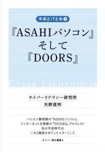 本新サイバー閑話で連載していた「平成とITと私」が<平成とITと私①『ASAHIパソコン』そして『DOORS』>としてサイバー燈台叢書第4弾として8月8日に発売予定です。アマゾンおよび三省堂本店など一部書店で購入できます。定価1350円(税込み1485円)です。