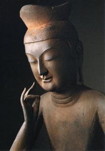 『胎児の世界』まえがきの冒頭にはこうある。「過去に向かう『遠いまなざし』というのがある。人間だけに見られる表情であろう」。また『海・呼吸・古代形象』に収められた「動物的および植物的」という論考では、動物と植物のありようを対比して述べたくだりで、ロダンの「考える人」と広隆寺の弥勒菩薩の2つの彫像を対比させ、ロダンの彫刻では、「感覚―運動」の動物相が全面に出て、人間のみに宿る「精神」の機能(「近」への志向)が表現されているが、弥勒菩薩には植物相(「遠」への志向)が全面に出ている、と分析している。「〝あたま〟を押さえるものがなく、胴体も手足も、筋肉はのびやかに、‣‣‣、微笑を浮かべた口許には、小宇宙を象るような指の輪が添えられ、‣‣‣。宇宙リズムと秘めやかに共振する植物系の、その内に深く蔵されたこころを、表わそうとしたものではないか」。