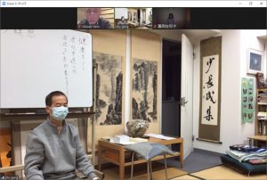 カメラアングルも教室全体がうまくおさまり、先生が坐っているときも、蠕動しているときもほぼ全体が俯瞰できるように設定され、マイクから流れる先生の音声も明瞭に聞こえた。本部教室でみんなといっしょに先生の話を聞き、蠕動したり、瞑想したりするのとは違うと思うが、それなりの臨場感もあり、個人的には久しぶりに参加した瞑想教室で得るところがあった。こんな具合に受講できるのなら3日間参加したいと思ったほどだが、あいにく前日から風邪をひいていたこともあり、1日だけの参加で終わった。