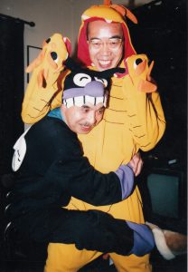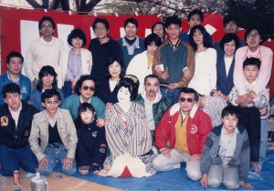 最初のころの顔ぶれには村瀬さん、おてもりさん、斎藤さん、編集部の宮脇、見沢両君、「あむ」の荒瀬君、小本さんなどの姿も見え、まさに『ASAHIパソコン』気勢会の趣で、当時の出版局次長、柴田鉄治さん、三浦君なども参加してくれている。その後はときに地元鎌倉の作家、井上ひさしさん、CGの大家、河口洋一郎君なども顔を見せた。雨の日に若い女性陣が気を利かせて持って来てくれたぬいぐるみで大いに盛り上がったこともある。明治大学の夏井高人さんも一度来て、しこたま酔っぱらって帰っていった。法政大学の白田秀彰さんが他の人とは群を抜いた伊達姿で若い女性と写っている写真も残っている。