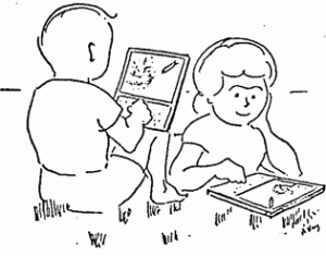 アラン・ケイは、最初のパーソナル・コンピュータともいえるアルト(Alto)計画の中心技術者であり、幼稚園の子どもから研究所の科学者まで、だれもが楽しみながら使える「創造的思考をするための道具、ダイナブック・メディア」の提唱者として知られている。ケイ自身が描いた、2人の子どもが野外で「ダイナブック」を使っているたった1枚の絵(写真)は、「夢のパーソナル・コンピュータ」を人びとの前に具体的に提示し、その実現に向けて無限のインパクトを与えたのだった。