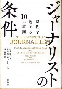 アメリカのジャーナリズムについて知るためのもう1冊 ビル・コバッチ&トム・ローゼンスティール『ジャーナリストの条件』(澤康臣訳、新潮社、2024)は「ジャーナリズムが脅かされており、それは同時に民主主義の危機である」という問題意識に基づき、2001年、2007年、2014年、2021年と改定を重ねつつ、インターネット時代におけるジャーナリズムのあり方を模索し続けている労作である。