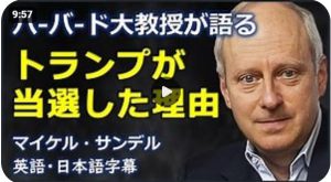 トランプ大統領登場と民主党および米マスコミ界の罪 2024年にトランプ大統領が再選されたとき、ハーバード大学のマイケル・サンデル教授(『ハーバード白熱教室』の著者)は、「トランプ大統領を生んだのは、貧富の拡大を助長してきた民主党政権の罪である」と述べた。「もしドナルド・トランプが不適格で、我々が言うように、民主主義の脅威であるとしたら、なぜ国民の半数、いや半数以上の人びとが、我々の提案する民主主義よりも、彼を選ぶのか。トランプはこれを巧みに利用した。そして民主党はまだこの現実を受け入れていない」。「何十年間も、勝者と敗者の格差は深まり、政治を悪化させ、人々を分断させてきた。‣‣‣。それは民主党と共和党がともに推し進めてきた市場重視の新自由主義的グローバル政策で、上級階級の人には莫大な利益をもたらし、国民の下層階級の人びとには賃金の停滞、仕事の海外流出をもたらした」と。
