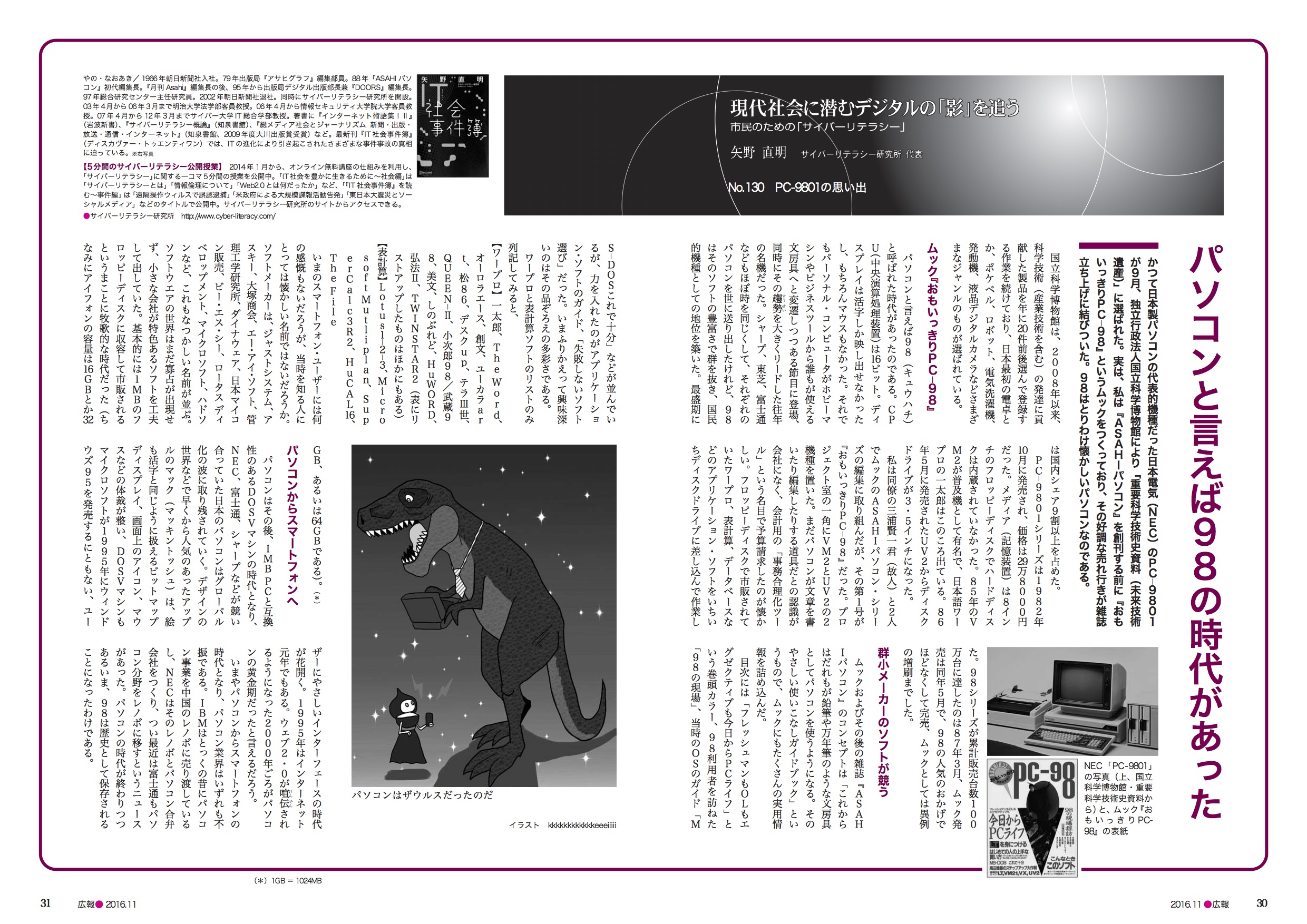 PC-9801、私にとっては色々な思い出があります。学生のころPC-8001が世の中でブームになり、『Oh!PC』という雑誌が、ソフトバンクから創刊された記憶があります。当時コンピュータに目覚めはじめた私としての愛読本でもありました。記事はNECのPC8000、8800、9800シリーズのことが中心で、パソコン入門書として読んでいました。