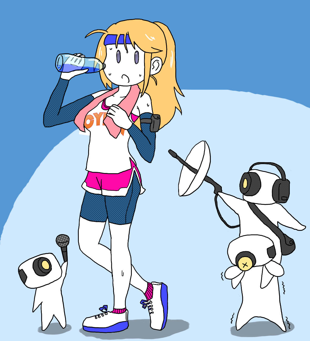 これも映画に触発されて、ランニング姿の若い女性が出てきますが、休憩時ですら監視されてしまうという風刺もあります