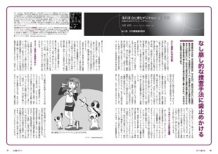 ①は「逃げ場のない監視体制」、②は「形振り構わぬ捜査網」。イラストのコンセプトも似てしまいました