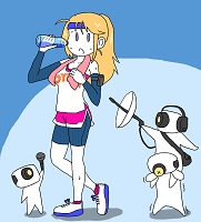 監視しているチビっこいのは、防犯カメラをモチーフにしたキャラクターです。PLANEX社製のスマホ監視カメラがユニバーサルピクチャーズのミニオン(子供向けキャラクター)みたいだったので、擬人化してみました。今回限りのキャラですが、「デバカメくん」という名前があります。「(監視用の)デバイス」「出歯亀」「カメラ」あたりを連想した思いつきです。元がカメラなので、非生物心のない捜査という連想でもあります。