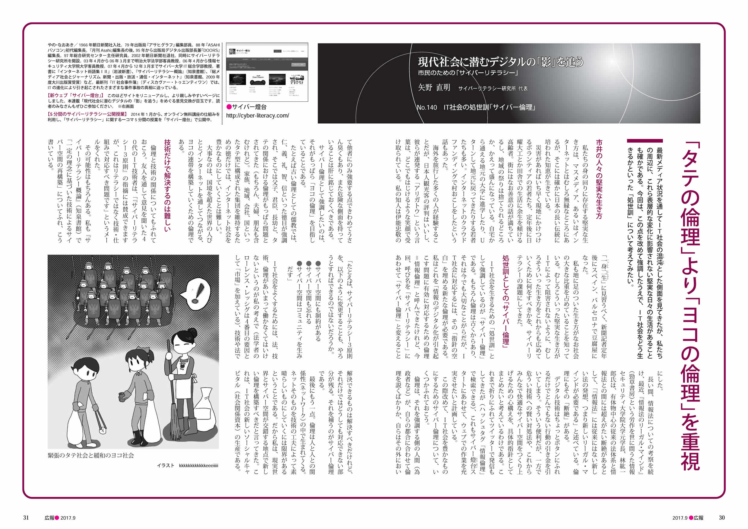 これまで「情報倫理」と呼んできたものを「サイバー倫理」と呼び変えたのが今回の注目点です(^o^)。以前、ツイッターで散発的にやっていた、サイバー倫理の具体的指針づくりも本格化したいと思っています。