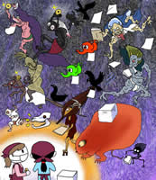 今回のイラストはどちらも元ネタありきなので、それを知らないと何のこっちゃ?という内容なのかもしれません。コンセプトは、「さまよえる蛍たち」です。ちょっと捻くれているというか、入り組んでいます。