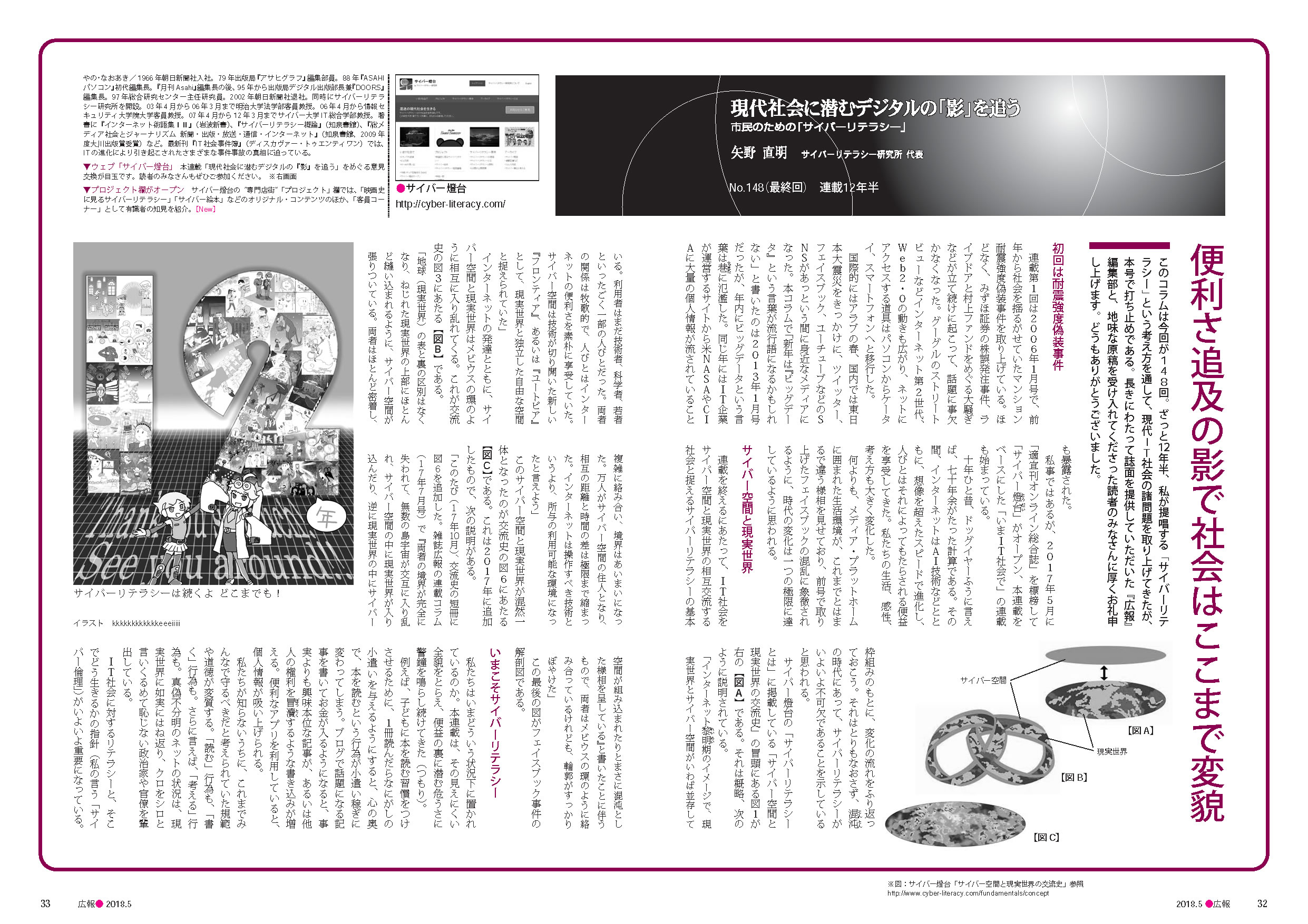 『広報』の原稿最終回、おつかれさまでした。12年半という期間そのものも驚異的ですが、その内容も常に時代の最先端を追い続けていらして、そのご苦労が偲ばれると共に、やはり矢野先生でなければ出来なかったことだと、改めて感銘を覚えました。